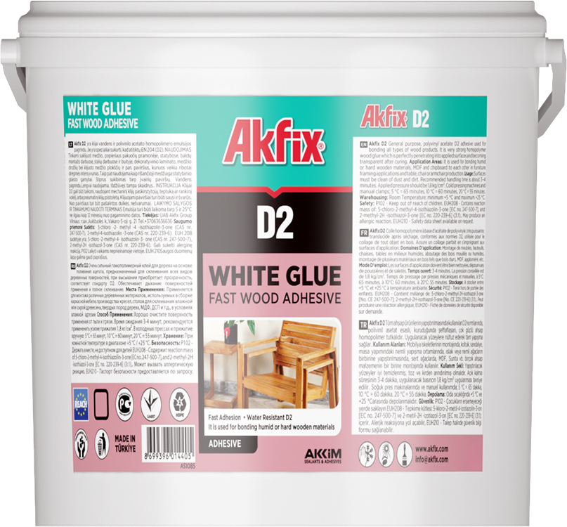 Adeziv pe bază de emulsie de homopolimer acetat de polivinil şi apă. Este special formulat pentru a se conforma standardului EN 204 (clasa D2).