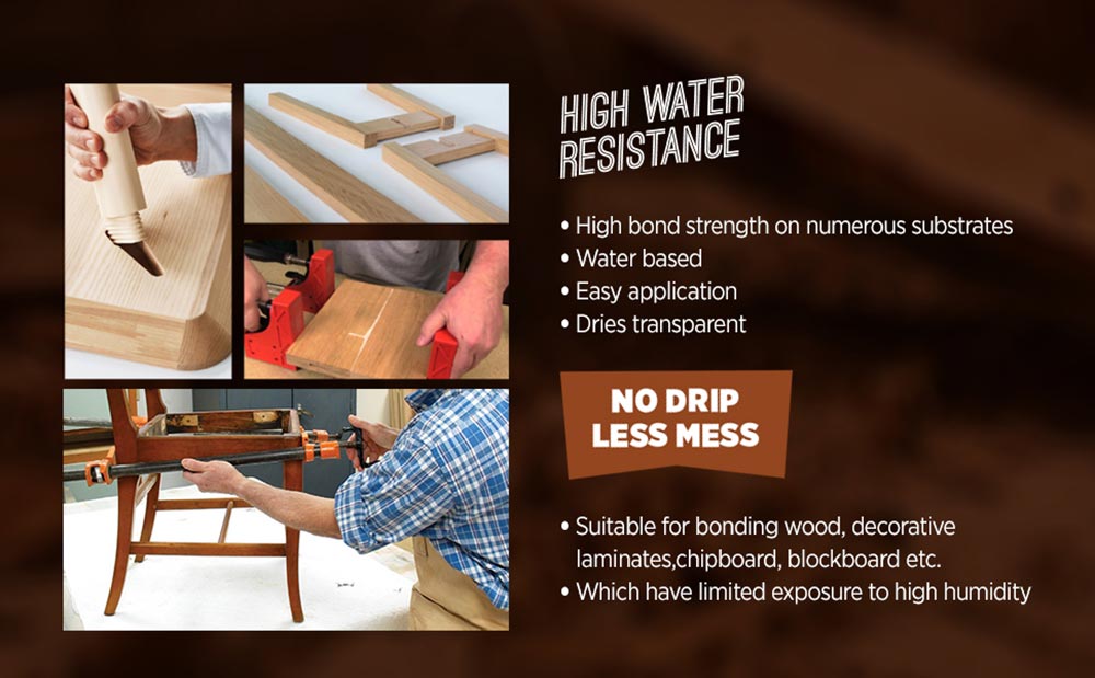 Potrivit pentru lipirea lemnului, a panourilor laminate decorative, a plăcilor aglomerate, a plăcuţelor de lemn etc., care sunt expuse intermitent unor condiţii de umiditate ridicată.