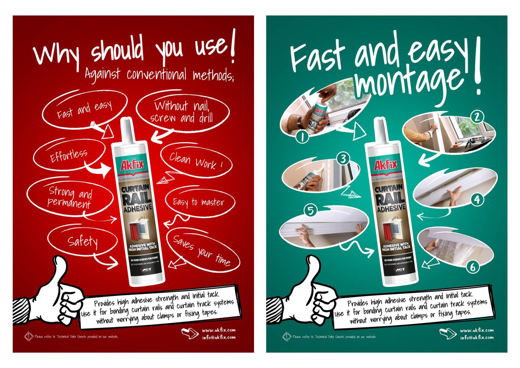 Adeziv monocomponent profesional, de înaltă calitate, cu forţă de adeziune mare şi o aderenţă iniţială puternică. Potrivit lipirii şinelor şi barelor pentru perdele, fără a fi necesară utilizarea de cleme şi/ sau benzi adezive pentru fi xare.